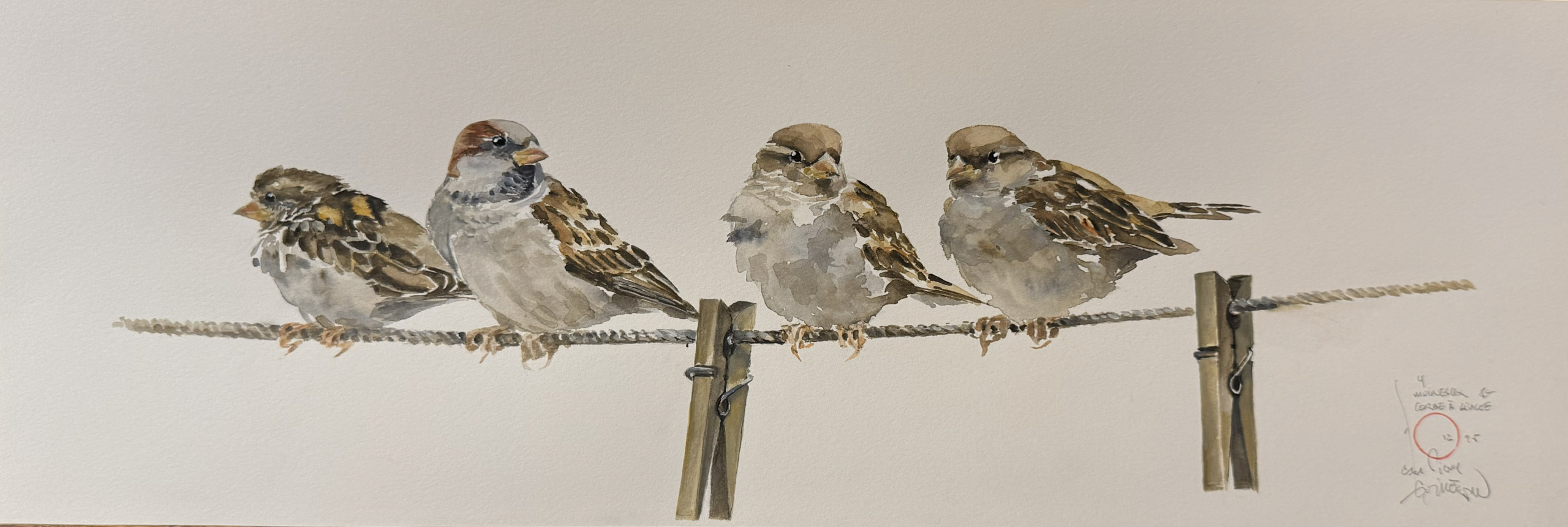 25-193 "4 moineaux, corde à linge"